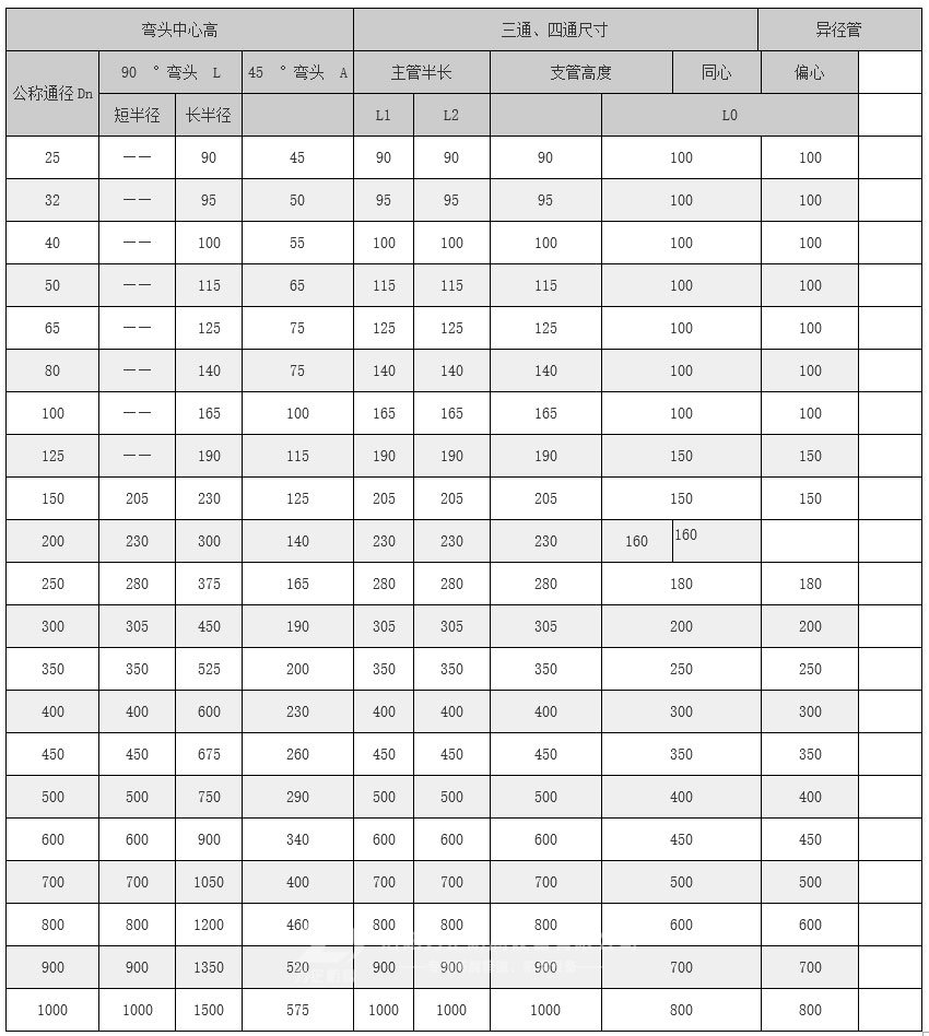 襯塑彎頭是采用與管材相同材質(zhì)的板材用沖壓模具沖壓成半塊環(huán)形彎頭,然后將兩塊半環(huán)彎頭進(jìn)行組對(duì)焊接成形。襯塑彎頭采用與鋼襯塑管道相同材質(zhì)的襯里材料和相應(yīng)尺寸,與管材配套使用,具有與管材相同的抗腐能力,具有互換性和通用性。鋼襯塑彎頭的規(guī)格如下: